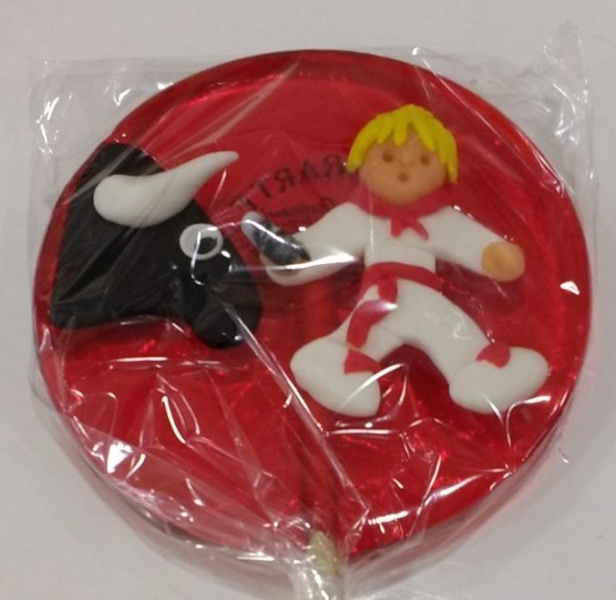Piruleta de caramelo tradicional con muñecos de fondant elaborados artesanalmente 4,50 euros